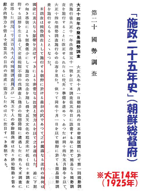 日本では1920年から国勢調査が始まったけど、朝鮮では5年後の1925年に実施されているわ。調査員を4万人以上を動員した調査だったのよ。