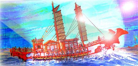그런데 일본과 한국의 교류에 사용된 배입니다만, 어떠한 형태를 하고 있었는지요?