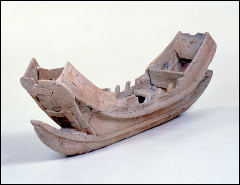 고대의 배를 아는 단서는, 고분등의 유적에 있습니다.다음의 사진은 발굴된 고대의 배의 모형입니다.