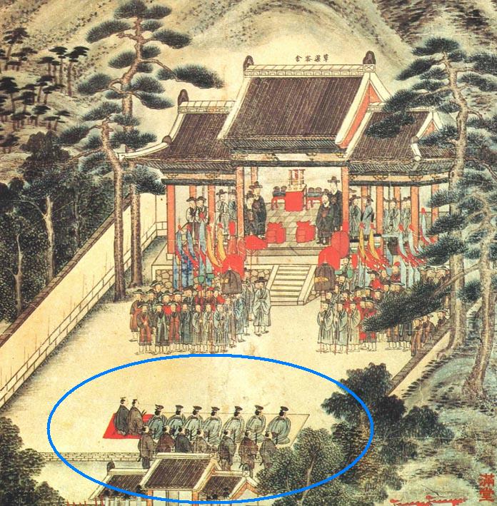 조선 관리에 조아려 조공하는 대장경 스토커 열등 왜인