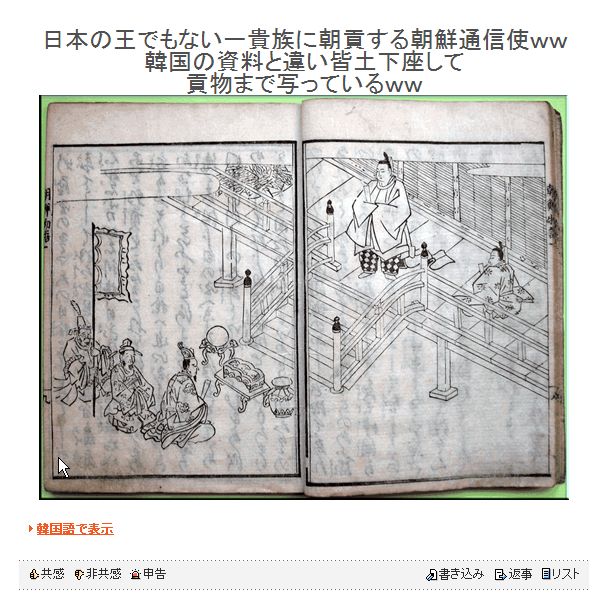 そのスレにある、この絵(↓)ですが「朝鮮通信使」の絵ではありません。
