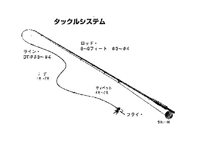 フライ(毛鉤)は軽いので太い糸を使い鞭のようにして投げます。