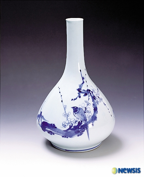 チォングファバックザメズックゾムンビョング(青華白磁梅竹鳥紋瓶).18世紀作品です.