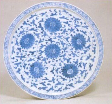 青華白瓷宝相華唐草紋(青華白磁宝相華唐草紋) お皿です.