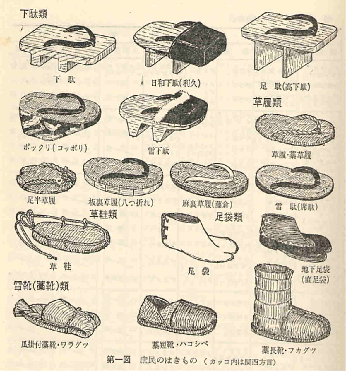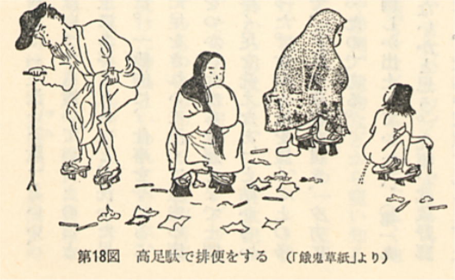 굽이 높은 下駄를 신고 、糞尿나 排泄時에 발이 오염되지 않도록 使用하였다.