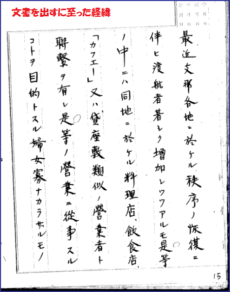 この文書は慰安婦や慰安婦の募集業者の取扱(取締り)について今後の方針を指示したものですが、この文書を出すに至った経緯が説明されています。
