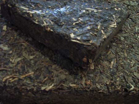 このときに飲まれていた「茶」は「団茶」という種類で団子のように突き固めた固形状のものでした。(飲む際に「団茶」を粉末状にし、釜の中に投げ入れる「煎茶法」と呼ばれる飲み方をしてました)