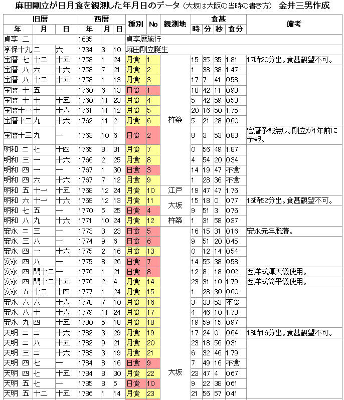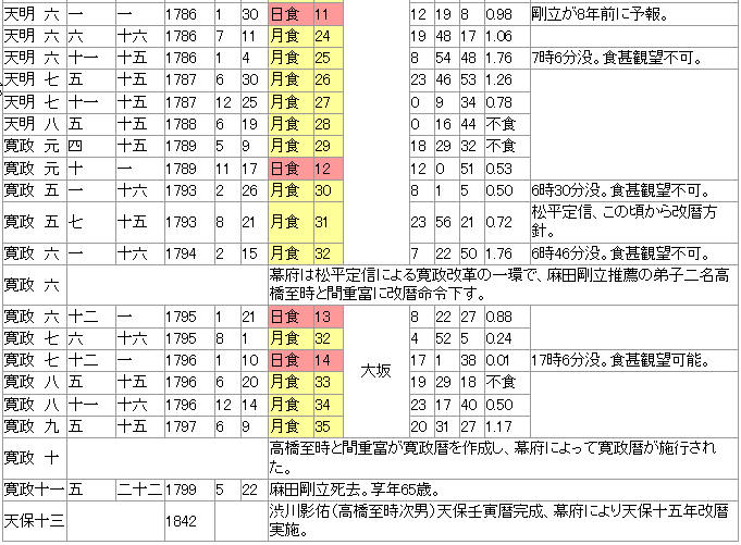 天明 六   一   一   1786   1   30   日食   11   12   19   8   0.98   剛立が8年前に予報。