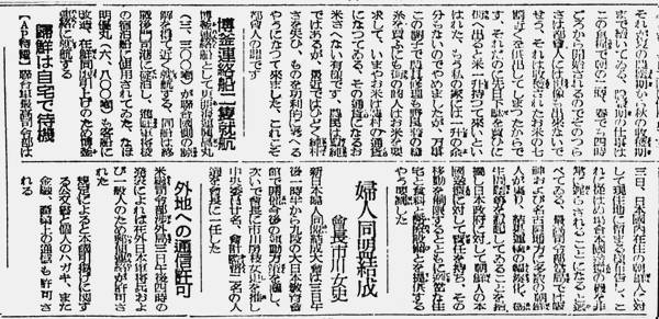 【AP特電】連合軍最高司令部は三日、日本国内在住の朝鮮人に対して現住地に留まる様布告し、これに従はぬ場合本国送還の儀を非常に遅らされることになると述べてゐる、最高司令部当局では阪神および名古屋地方に多数の朝鮮人が集り、結果運輸の輻湊化、衛生問題等を惹起してゐることを指摘し日本政府に対して責任を持ち、その移動を制限するとともに適当な住宅と食料と医療設備とを提供するやう要請した