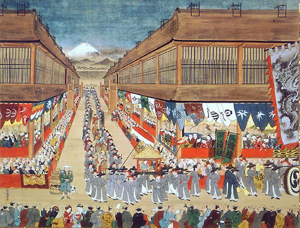 통신사 행렬이 淸道旗를 들고 행진하고 있다.