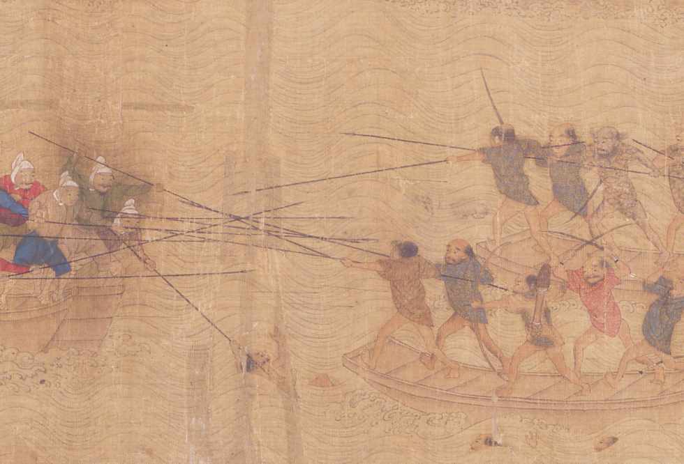 中国沿岸を荒らしまわった倭寇を中国人画家が描いたものです。