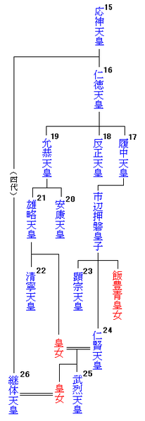 전후, 현황실은 게이타이 덴노를 초대로서 수립되었다고 하는 신왕조론이 활발하게 되었다.그 이전의 야마토 왕권과의 혈연 관계에 대해서는 현재도 논의가 계속 되고 있다.