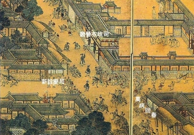 7번의 경기감영의 정문 앞으로 사거리가 형성되어 있고 상점들이 있다. 그 중 신설약국(新設藥局)과 만병회춘(萬病回春)이라는 가게 이름을 가진 약방 겸 한의원이 있는데 기와집의 건물에 붙여 假家에 遮陽까지 설치되어 판매행위까지 하고 있는 것을 보면 제법 큰 약방이었던 것 같다.
