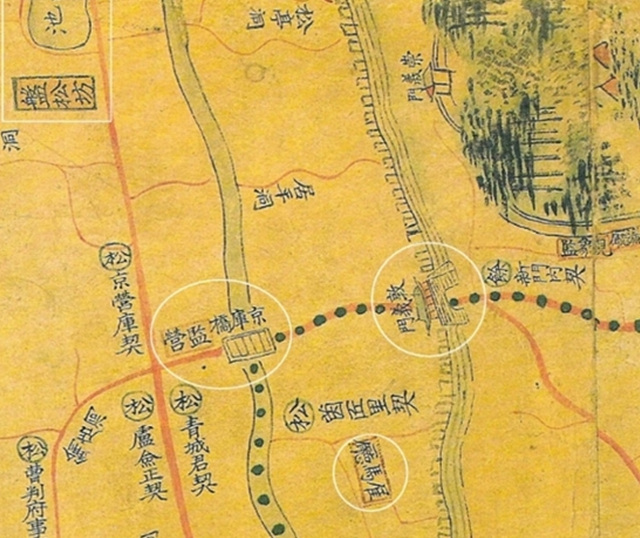 昔の地図を見ればソウルで敦義門を出てちょっと行けば河川が出て警告校(京庫橋)を経てばすぐ競技(景気)監営が出る. その外にも周辺には雇馬庁(雇馬庁)という言葉を管理する官庁があった. 指導あちこちに書かれている係(契)は部屋(坊) すぐ下の行政区域で  霊鳥(英祖 在位 1724‾1776) 焚く東部 6坊, 南部 11坊, 西部 9坊, 北部 12坊, 中部 8坊で 5部 46坊であり, その下に 328係(契)を置いた.