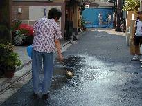 미즈노마나무:일가의 주인이나 주부, 은거, 아이, 고용인 등 그 집의 담당하는 사람이 이른 아침에 집이나 가게의 앞을 청소해, 그 마무리로서 물을 뿌린다.그 결과, 동내의 도로를 맑게 할 수 있어 촉촉하게 물을 포함한다고 하는 상태가 되었다.도로가 얼 우려가 있는 한겨울은 실시하지 않았지만, 여름 철은 량을 취하는 목적으로 저녁도 미즈노마나무를 했다.
