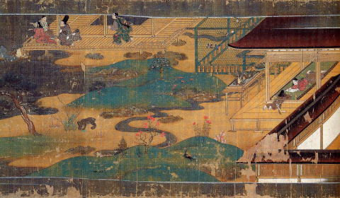 この絵巻は、937年ごろからの、いくつもの霊験物語が描かれているが、絵の成立が1309年なので、盆栽も、物語の時代のものというより、絵が描かれた当時の情景と解釈する方が正しいようだ。