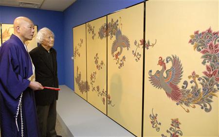 나카지마 키요시(왼쪽)는시미즈절탑두 성취원에 4 방 46면의 맹장지그림을 봉납