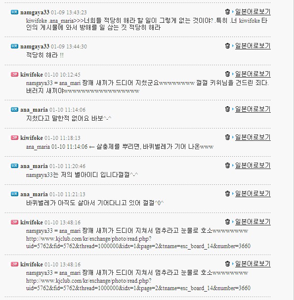 kiwifoke .ana_maria>>>너희들 적당히 해라 할 일이 그렇게 없는 것이야? .특히 .너 kiwifoke 타인의 게시물에 와서 방해를 일 삼는 짓 적당히 해라