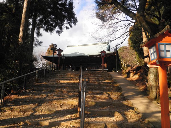 左右への分岐点を右に進むと、如意輪堂(左上)と開山堂(正面)が見えてくる。
