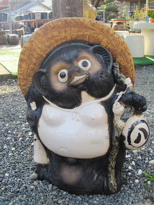 Shigaraki陶磁器の店に行けば、必ず多くの狸が並べてある。