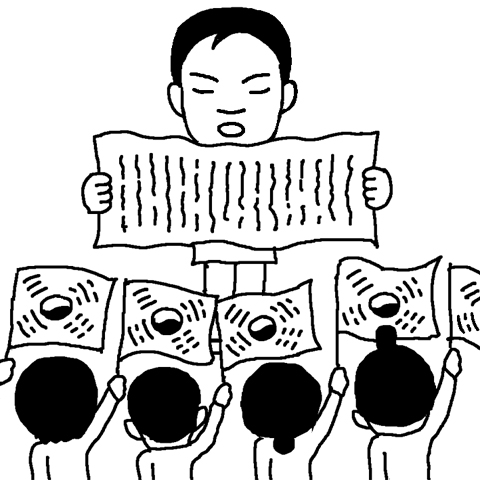 しかし、宣言書の「公約三章」を見ると、「最後の一人まで、最後の一刻まで」という行動指針が明確に示されている。33人のうち、忠清北道出身の権秉悳(クォン・ビョンドク)は警察の取り調べに対し「前の人が拘束されたら、後の人がその意志を継ぐという考えだった」と堂々と語った。普成専門学校の校長・尹益善(ユン・イクソン)が「朝鮮独立新聞」第1号を発行して逮捕されると、天道教月報の編集人だった李鍾麟(イ・ジョンリン)が2号から4号までを印刷した。だが李鍾麟も逮捕され、次に京城書籍組合の書記だったチャン・ジョンゴンと京城専修学校の学生たちが5号から9号までを発行した。彼らまで逮捕されると、今度は普成専門学校の教授・高元勲(コ・ウォンフン)らが後を継いだが、3月27日に連行された。互いに顔も知らない人々による、リレー方式での戦いだった。