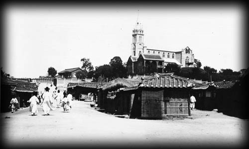 上の写真の撮影場所を 「明洞聖堂」と正確に言います>当時の朝鮮の写真の柱石はブゾングファックハンでも多いが, 「明洞聖堂」との柱石が正確だと言い切った証拠を提示願う