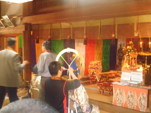 本堂の中を覗くと、練供養会式の準備がここで行なわれていた。