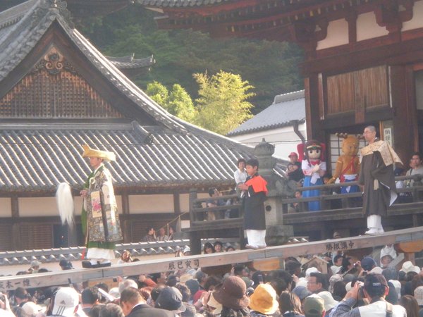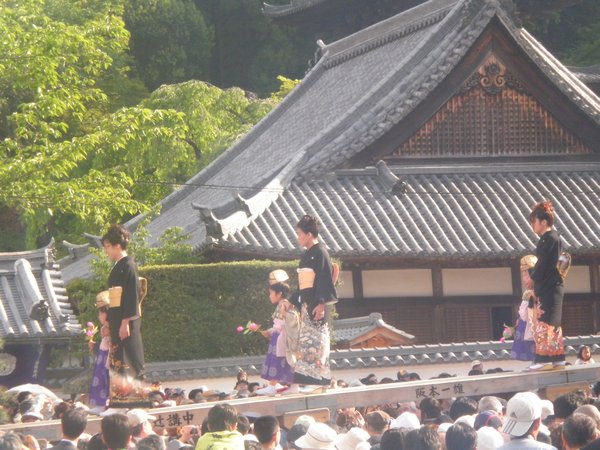 まずは、僧侶と女の子2人が極楽堂(本堂)から出てきた。