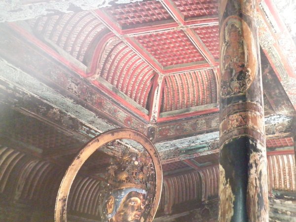 国宝の三重塔は、内部が極彩色鮮やかに彩られている。