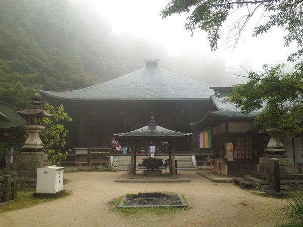 深い霧の中に立つ本堂(重要文化財)