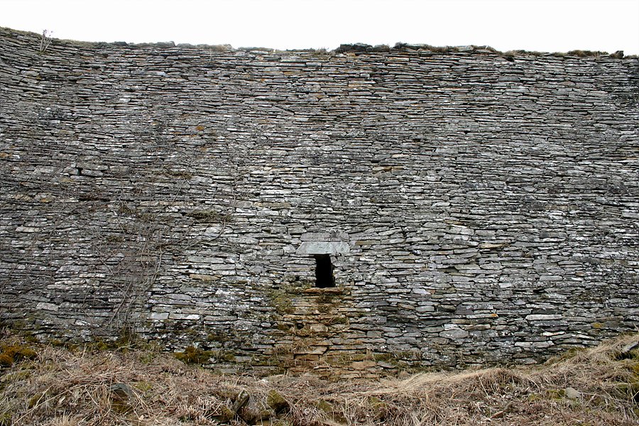 크기의 얄팍한 돌로 축성한 성으로, 약 100m 정도가 붕괴된 것 외에는 대체로 현존한다. 동 ·남 ·북