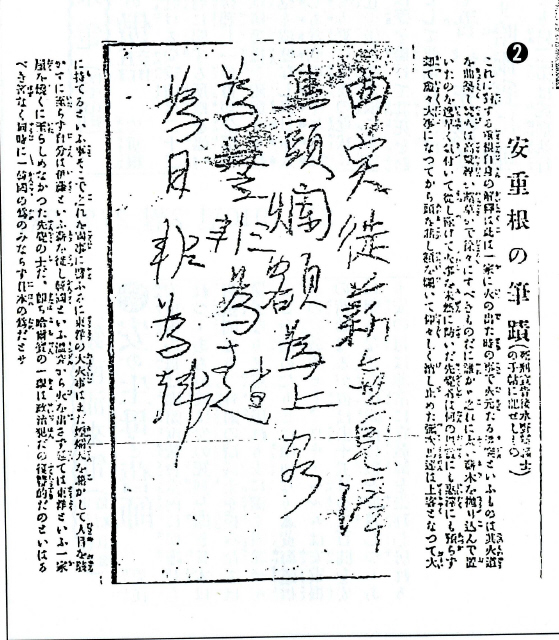 어느 쪽의 신문도 안중근이 일본인 변호사에 남긴 자필의 한시의 기사 「안중근의 필적」(밑그림)에 임해서 자세하게 쓰여져 있습니다. ※밑그림은 아마 독립기념관의 기자 발표용 자료로부터의 전사는 아닐까 생각합니다.