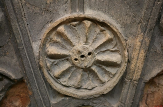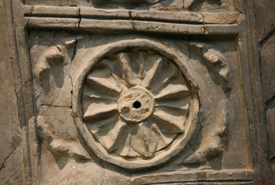 황룡사 치미 뒷부분으로 연화무늬와 사람 얼굴무늬가 세세하게 새겨져 있습니다. 남자 인물의 얼굴