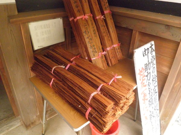 これは木の皮ではなく、木の板を重ねた屋根であり、こけら葺(kokera葺き)という。