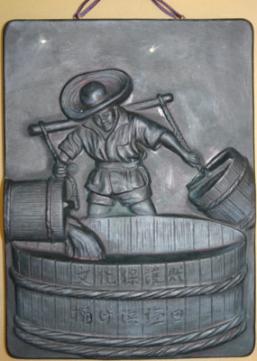 게이쵸 이전의 양빈염전은, 제염용 해수는 전부 사람력으로 참작해 올려 옮겼지만, 그 노력은 큰 일이었다.