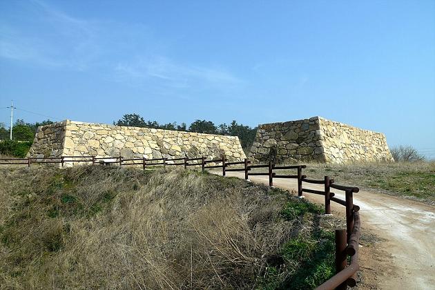 가까운 낮은 산마루(山頂)에 있는 산정식산성, 지리적 위치에 따라 해안성(海岸城), 축성재료에 따