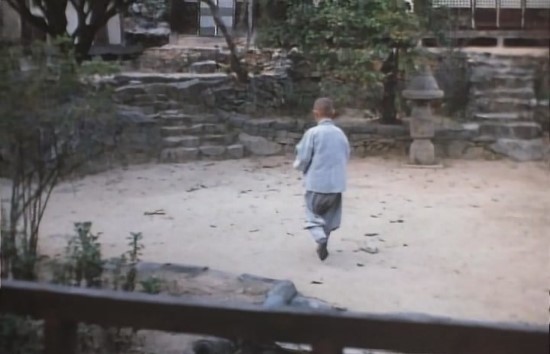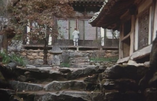 暗い方案, チァングホムンで仄かな弱い光だけが映るだけだ. 老けたお坊さんは力無い声で弟子を呼ぶ. ヒェジンよ. 返事がない. ドアがあいて急に明るくなりながら光の零れ落ちる庭先が現われる. 1989年映画 ¥”逹磨はなぜ東へ行ったのか¥”の初場面だ.