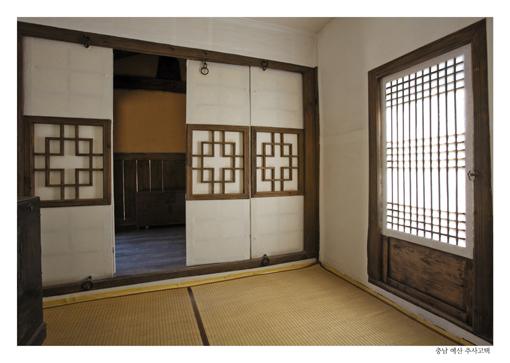일본의 전통 주택이라면, 오등의 미닫이가 이용되는 장소이지만, 조선의 전통 주택은 hinged door가 사용된다.