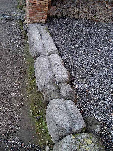Sliding door tracks at the entrance of a Roman shop in Pompeii. 1st century AD
