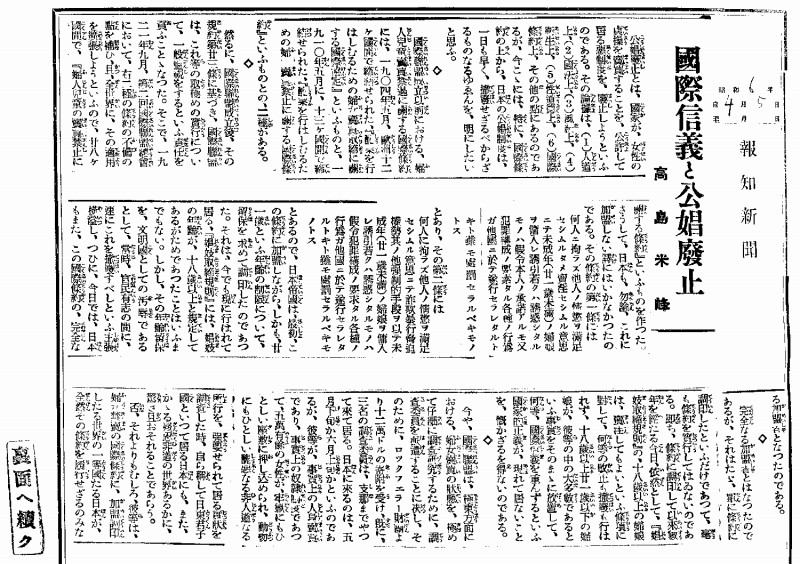 資料1 「国際信義と公娼廃止」(報知新聞 1931年4月5日)