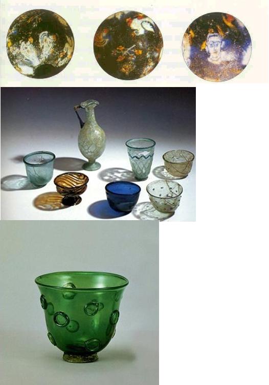 下のガラス製品たちはローマに残っている遺物中でも似たり寄ったりなことが多いから捜してみてkkk