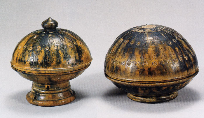 도장 무늬의 유약을 바른 녹유 토기