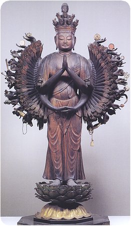 11면천수 관음 보살 입상, 헤이안 시대 후기의 작품, 높이 170.5cm.