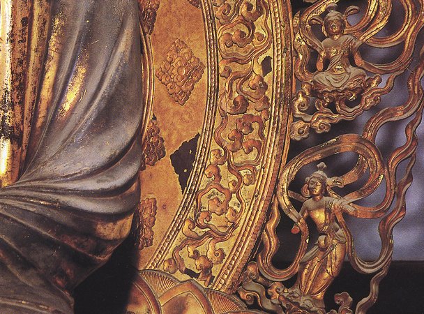 후광의 연 광부분에는, 좌우에 각 7체의 비천이 붙는다.