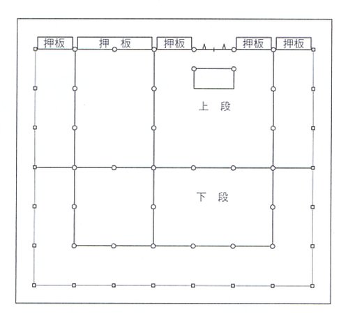 건물이 카미단, 시타단으로 나누어지는 것은 같지만, 상단은 2 방추가되어 4 방이 되었다.