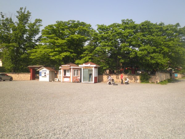분황사의 앞은 넓은 주차장.정규의 문은 사진우오에 있지만, 열려 있지 않다.