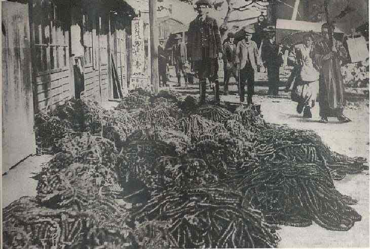 当時の写真 下のコンブの収穫のような物は 朝鮮コインを紐に通した物です