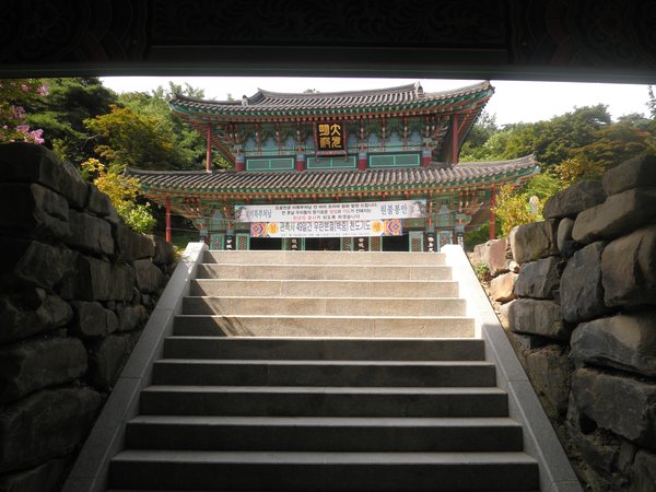 계단을 오르면 가람이 보여 온다.우선은 정면으로 본당이 대면.