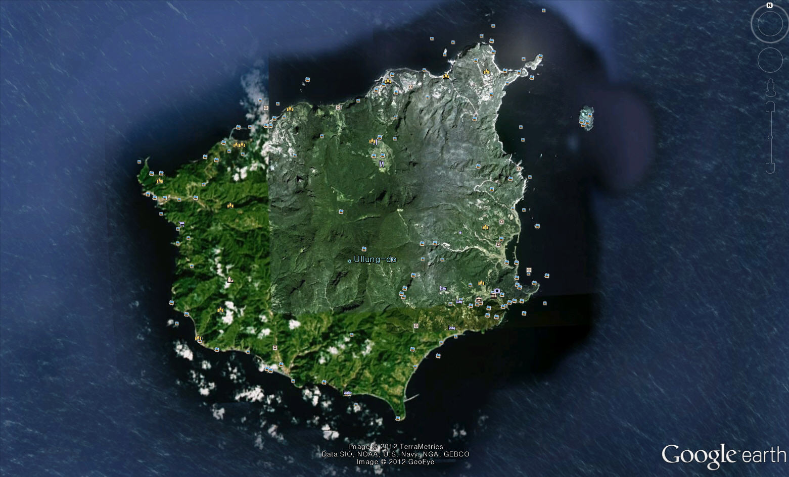 写真の大きい島は鬱陵島で, 東北の方に存在する小さな島がずっと島です.