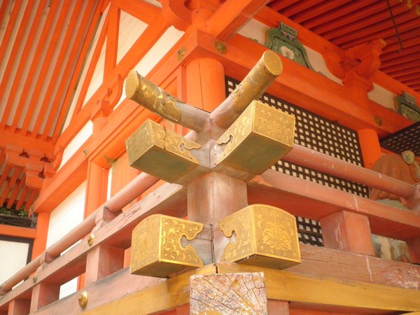 본전 정면.섭사공들, Naijin의 문에는 금박이 붙여지고 있었다(그 밖에 금박이 붙여진 예는, 1517년 건립의 니우 중앙 관서부신사 신전, 모모야마 시대의 호우라이 야마가미사 신전등이 있다).